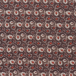 1800s reproduction floral trellis design, adorned with delicate floral motifs in cream and red on a deep brown background.