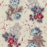 Blue floral reproduction print on a cream/grey background inspired by traditional floral designs found in 17th & 18th century Dutch chintz.