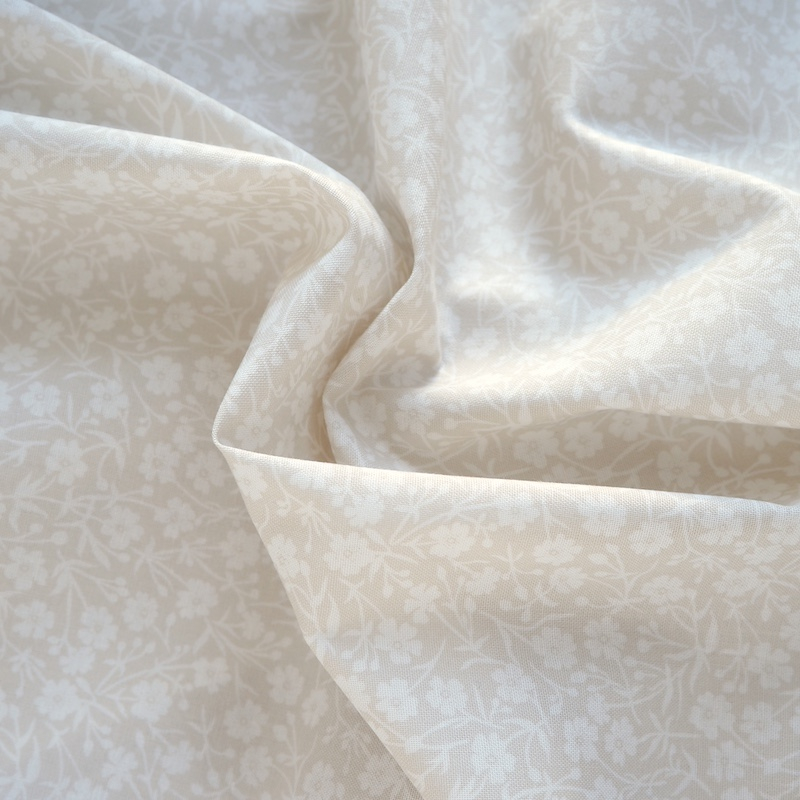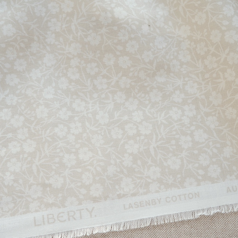 August Meadow collection from Liberty Fabrics presents a sophisticated and timeless blossom design. The print was originally designed for Liberty in 1958. It is a charming tonal print, ideal to use as a blender print to sit alongside the vast array of Liberty prints. Shown here in a beige and off-white colourway.