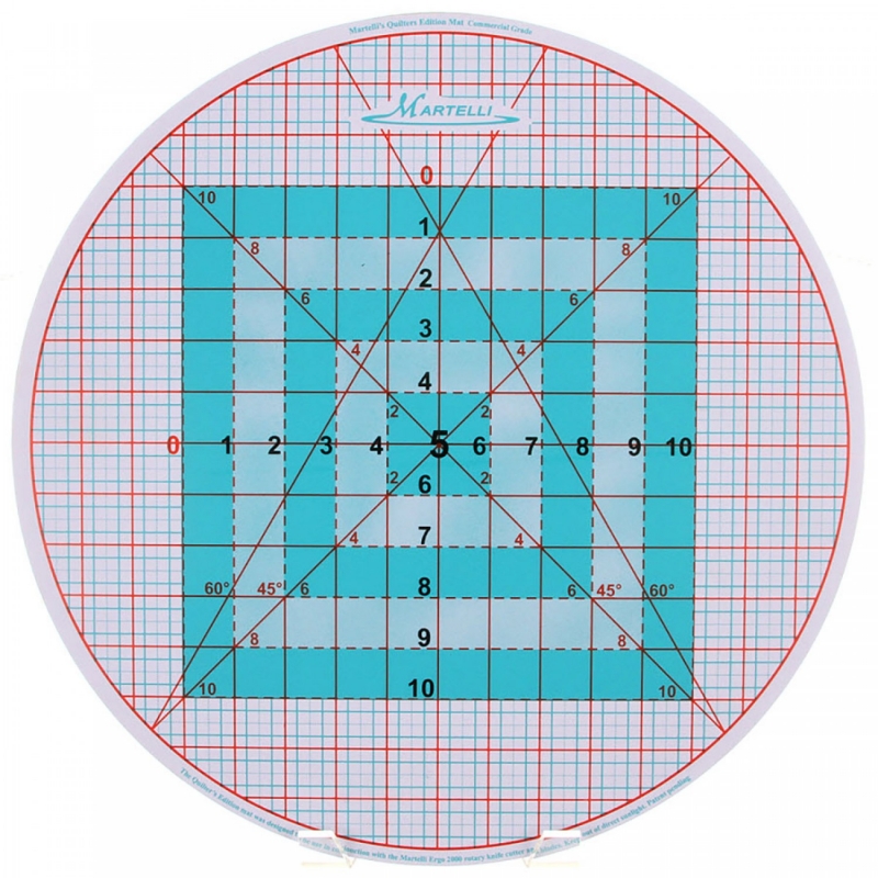 Martelli roundabout cutting mat comes with a turntable base. This high quality and versatile tool will quickly become an essential part to your sewing. The Martelli cutting mat makes cutting fabric accurate, easier and faster. Save time, fatigue and frustration when trimming blocks and units - no need to realign fabric and ruler with each cut, simply turn the mat instead. 16" diameter grid lines for patchwork and squaring up blocks. The rotating mat features a heavy duty base with a no slip backing, giving you years of service. The cutting mat is removable and can be replaced if it wears out. No need to invest in a new turntable base.