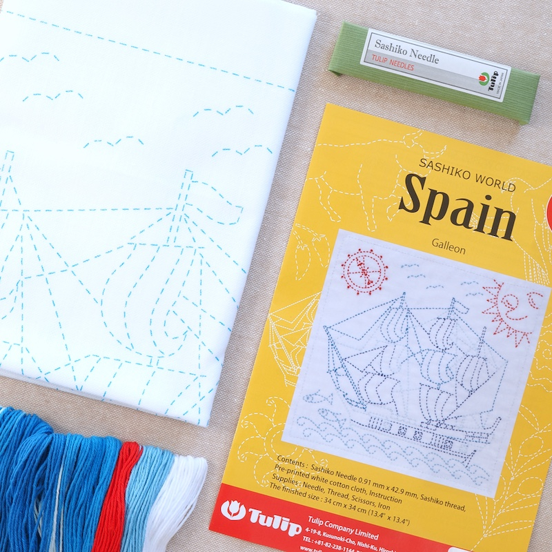Kit includes; Tulip Sashiko needle, Sashiko thread, pre-printed natural cotton cloth and instruction sheet.